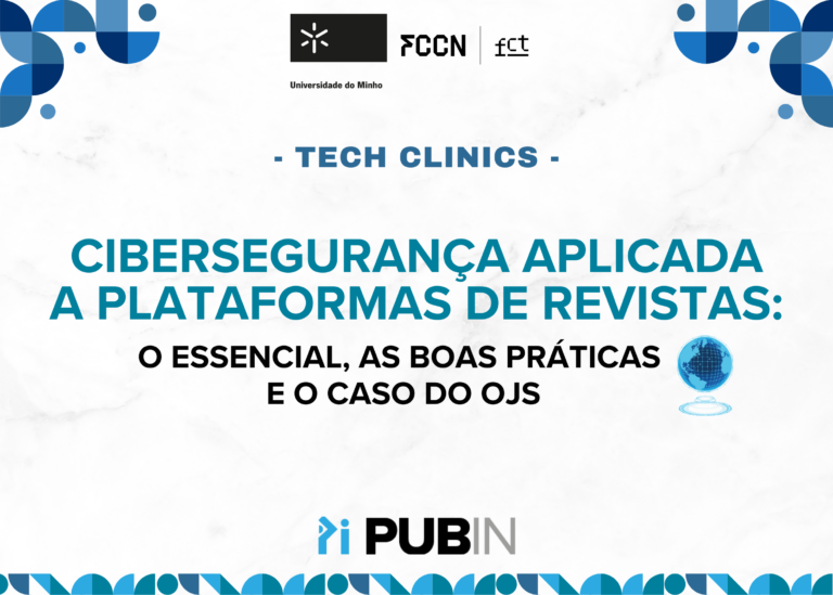 A 1.ª Tech Clinic chama-se “Cibersegurança aplicada a plataformas de revistas: o essencial, as boas práticas e o caso do OJS” e será em português. Será no próximo dia 4 de março de 2026, das 14h30 às 16h00. As inscrições são gratuitas, mediante inscrição aqui.